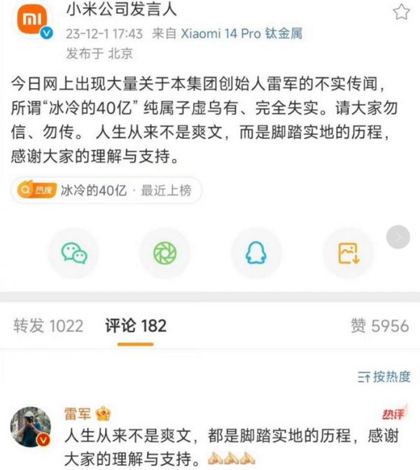 但雷军看了不开心,专程发文辟谣,且告诉大众:
