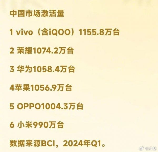 一季度手机出货量排名出炉:OV荣耀都是第一?