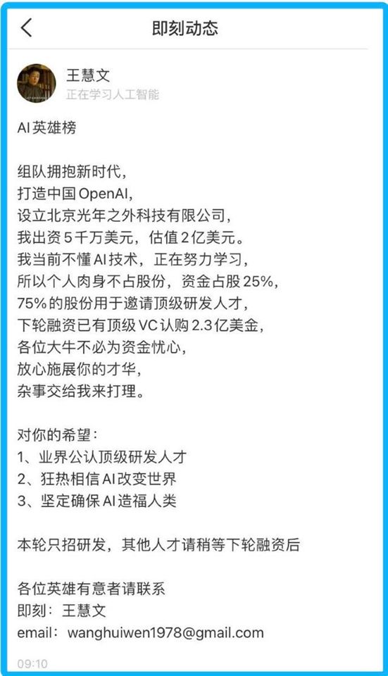 例如美团联合创始人王慧文,已经在大模型创业赛道中走完一轮。2023年2月,正是王慧文那篇广为流传的“英雄帖”打响了大厂高管进军大模型创业的第一枪。但4个月后,王慧文因个人身体原因暂时退出,美团则以20.65 亿人民币收购了光年之外。
