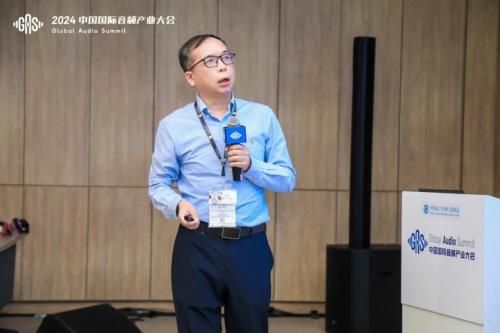 会上,中国电科首席专家、3所首席科学家汤跃忠发表演讲,深入探讨了新时代会议系统生态的构建,重点展示了慧声公司在高性能音头、网络音频传输以及会议智能化升级等方面的研究成果。