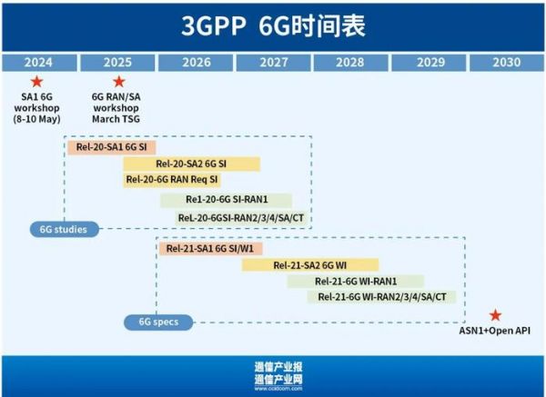 其次,3GPP预计第一个6G规范将于2028年底在Release 21中完成。这意味着在大约四年的时间内,3GPP将完成6G的核心规范制定工作,为6G技术的商用化铺平道路。