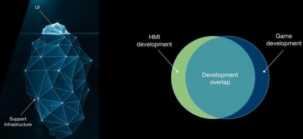 其次,相较于2D系统的“瀑布式”开发,3D HMI更趋向于“敏捷式”开发,强调设计与开发间的无缝合作。Unreal Engine所强调的不是取代2D,而是以“2D+3D”相融合的场景设计经验,大大缩短开发周期,将原本需要耗时2周的场景设计,缩短到5分钟搞定。