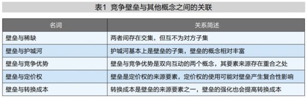 从定义的角度来看,竞争壁垒的内涵丰富,且与稀缺、护城河、竞争优势、定价权等概念间存在复合性的关联,为更好夯实竞争壁垒分析的概念基础,我们就其与相关概念间的关系进行了梳理(见表1)。
