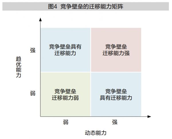 如图4所示,趋优能力和动态能力共同形成能够有效实现壁垒的动态优化的能力体系。当在位企业同时具备这两种能力,能依据内部资源禀赋和外部市场环境的变化不断地对原有壁垒进行加固、调整、重构,其竞争壁垒才能在当前快速变化的外部市场环境中有效地为其发展保驾护航。