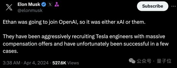 另一方面,马斯克旗下的xAI,已经到了跟自家老大哥特斯拉“抢人”的地步……