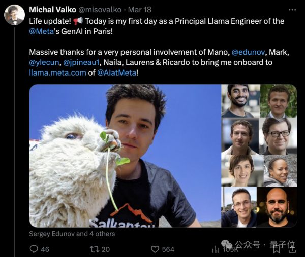比如DeepMind的高级工程师Michal Valko就在X上宣布,加入Meta担任Llama首席工程师。