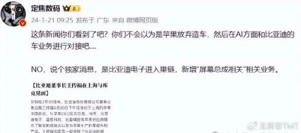 王传福与库克的会面背后,根据业内人士曝光,这次是比亚迪打入了苹果供应链,新增“屏幕总成相关”的业务。