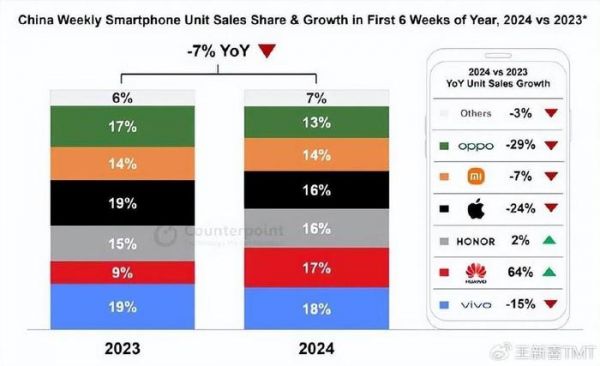 苹果这种背后转变的关键,其实就是华为的崛起。在今年前六周,华为市占率从9.4%上升到了16.5%,超越了苹果。