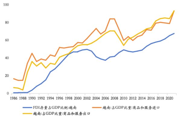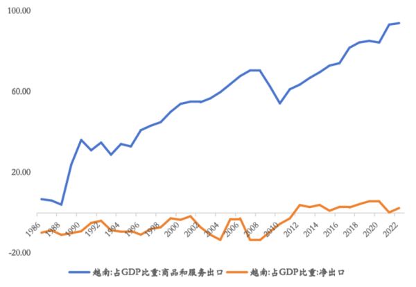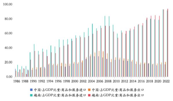 中国的经济增长更多是靠自己,而越南则是大进大出的外向型经济。
