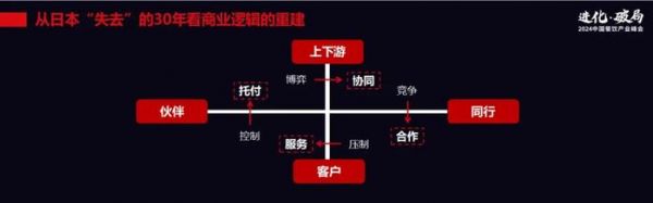 说这几个例子,我想表达的是,过去日本低速发展的30年,使得日本很多企业的商业逻辑发生了变化。上下游之间从过去的“博弈”变成了“协同”;同行之间从“竞争”变成了“合作”;它们对客户的态度从“压制”转向“服务”;合作伙伴之间的理念也从“控制”转向“托付”。