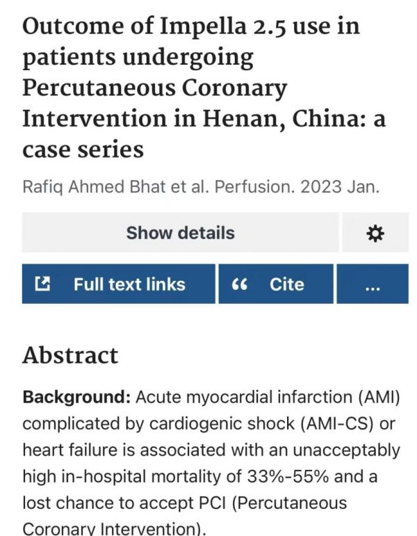 其后,2023年1月的《灌注》杂志曾发表过一篇《Outcome of Impella 2.5 use in patients undergoing Percutaneous Coronary Intervention in Henan, China: a case series》(中国河南省接受经皮冠状动脉介入治疗的患者使用 Impella 2.5的结果:病例系列),共报道了这家医院进行的六例接受左心室辅助装置(LVAD,Impella 2.5)的病例,其中两名接受手术的患者死亡。