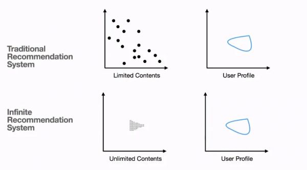 因为内容的供给目前是非常稀疏的。首先它不精准,其次它的供给有限,第一个是最靠近的,后面就越靠越远。