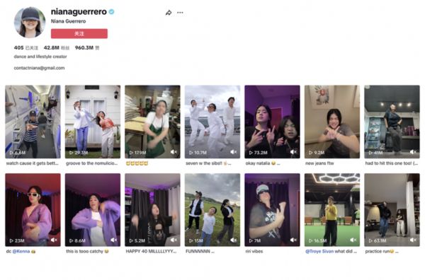 从 2016 年起,Niana 就开始上传舞蹈视频到 TikTok,至今已经拥有 4200 万粉丝。如今,Niana 的主页里,有将近三分之二的舞蹈视频都被静音了。