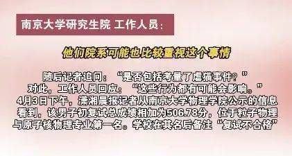 不过,好像也不能说与虐猫没有一点关系。毕竟,南大也承认,学校对虐猫风波是知情的。而考研复试,思想品德也是考核的一部分。
