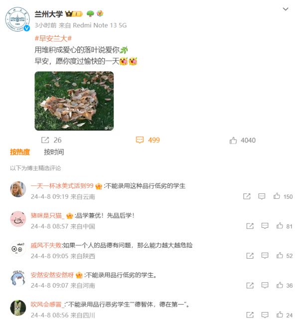 兰大则回应称,是否录取会综合考量,不“唯成绩论”。