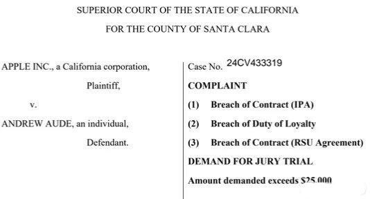 在这场法律诉讼中,苹果公司不仅寻求超过2.5万美元的损失赔偿,还要求没收Aude的奖金和股权。