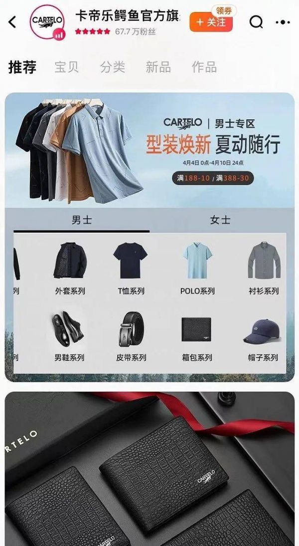 常逛商场的人应该对卡帝乐鳄鱼Cartelo不陌生——张嘴鳄鱼的商标,售卖商务休闲服饰,极容易把它和法国鳄鱼Lacoste混淆在一起。卡帝乐鳄鱼Cartelo是知名公司南极电商旗下的品牌。