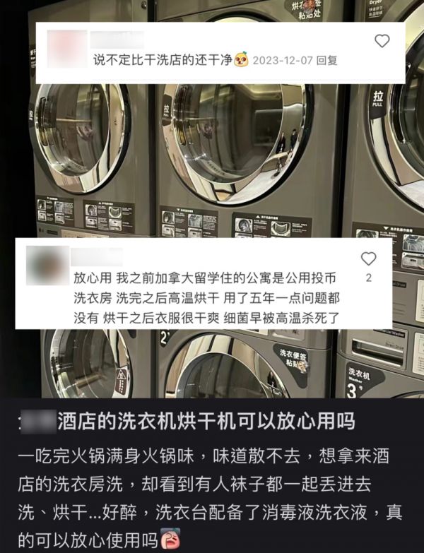而一些酒店的洗衣房里,更是安装了几万元一台的大牌商用洗烘机。不少受够了租住在老破小的独居男女,甚至想要开个钟点房,把积攒了一冬天的羽绒服都拿来酒店洗。“立省几百块洗衣费,这才是花小钱办大事。”