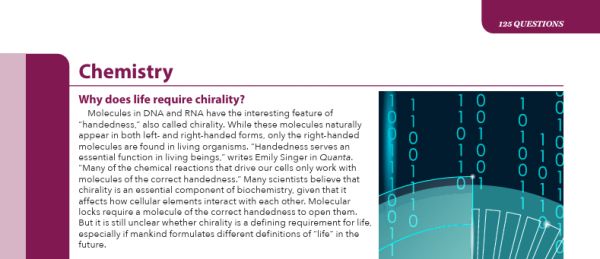 图1. Science125个科学前沿问题之“为什么生命需要手性?”