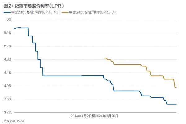 2023年,央行两次下调政策利率,带动1年期和5年期LPR(贷款市场报价利率)分别下降20个基点和10个基点,并引导商业银行有序降低存量首套房贷利率。2024年2月,5年期LPR继续下降25基点。截至目前,1年期、5年期LPR分别为3.45%、3.95%,均处于历史低位。