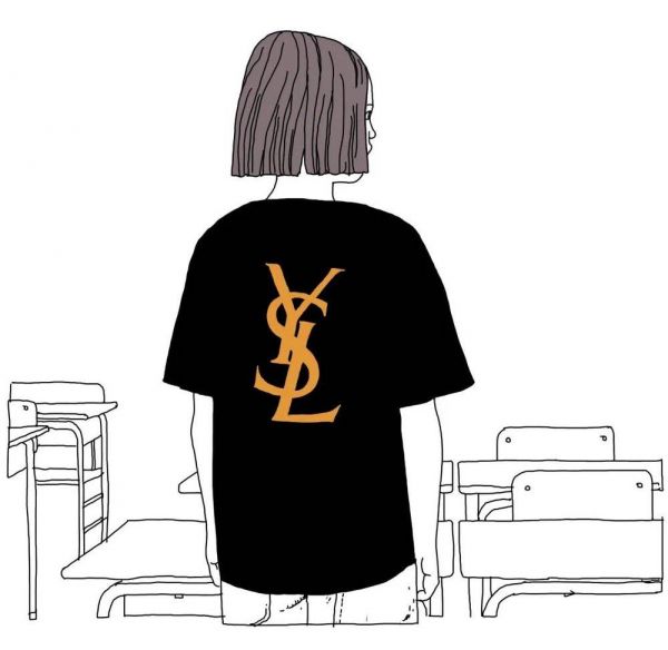 还有很多露出马脚的时刻。虽然学校不穿校服,但我从不觉得大家在攀比名牌,因为他们穿的名牌我都没有听说过。有一天我在地摊上看见一件印着YSL三个金色字母的黑色的t恤,和我的名字首字母一样。下一周我穿上t恤在教室前面大声说竟然有这么巧的事,前排的几个同学哈哈大笑:真的有人把YSL穿在身上啊?