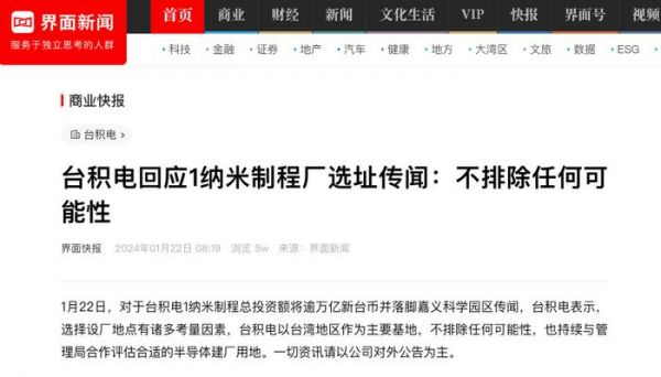 台积电的这一决策不仅是对美国市场的重要投资,也是其全球化战略的一部分。