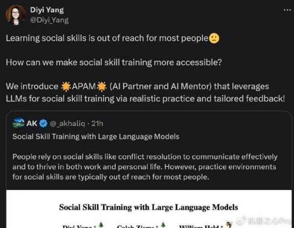 论文作者杨笛一表示:「学习社交技能对大多数人来说是遥不可及的,我们如何才能使社交技能训练变得更容易实现?基于此,我们推出 APAM,其利用 LLM 通过现实实践和量身定制的反馈进行社交技能训练!」