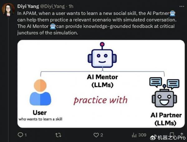 她接着表示:「在 APAM 中,当用户想要学习一项新的社交技能时,AI Partner 可以帮助他们通过模拟对话来练习相关场景。AI Mentor 可以在模拟的关键时刻提供基于知识的反馈。」
