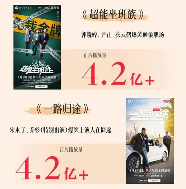 在刚刚过去的2024年短剧寒假档中,快手短剧稳定发挥,为市场贡献了20部播放量破亿的热门剧集。值得一提的是,相比其他平台的“常规”制作思路,快手短剧在寒假档短剧中召集了诸多明星主演,并且率先尝试了品牌定制的新形式。