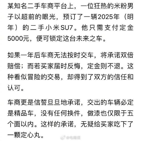 全球首台二手小米SU7成交,价格竟然在13万以内,这操作雷军可能都没想到