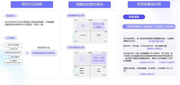 2.在视频营销领域,AI技术应用在视频洞察、视频内容生成与投放效果分析,形成闭环,从而达到更好地营销效果。通过分析头部视频和中腰部视频的共性点,分析市场内容供需平衡,并通过自动化匹配进行投放。在测试过程中,发现内容洞察方法能提高投放效果,最终效果是平均值的1.7倍。比如,通过分析视频整体特征分析,发现背景音乐调性,音乐风格在市场中使用的多与少等方面对提升效果有影响。最后,通过拆解和生成脚本,将内容分为不同部分,如用户痛点、营销卖点、产品卖点和引导转化等,以提高投放效果。