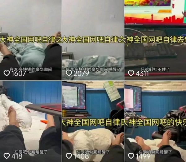 同时期,逃离工厂流水线,住进了网吧的“网吧大神”们,践行的似乎是一种更为降级的“自由”,然而这种自由又重新将他们困住。也许是出于好奇,我一直关注着这些“网吧大神”,并从他们的短视频中,拼凑出了其中最为活跃的四位“网吧大神”从2018年到2022年的生活局部。