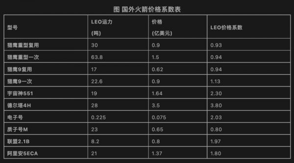 很自然的想法是采用“每千克单价”作为指标,对《中国的火箭贵吗?》一文中的表格进行统计如下: