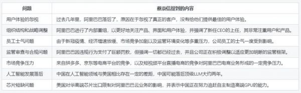 马云并未提到,但蔡崇信提到了一部分,比如忽视用户(购物)体验。在竞争上,他提到:阿里正面临拼多多、京东、短视频直播平台等多重竞争。