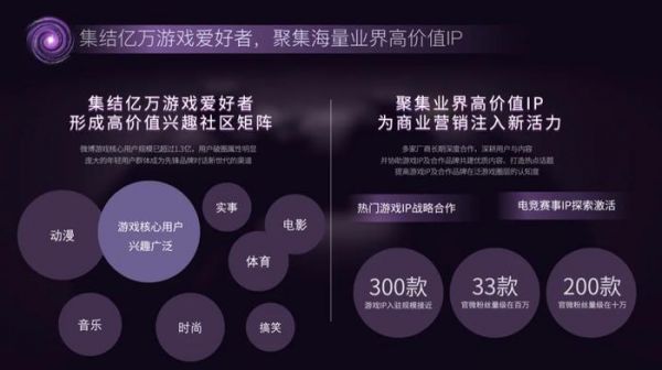 集结亿万游戏爱好者的平台,生长着海量业界高价值IP,近300款游戏IP入驻,国内游戏官微入驻率已经达到了惊人的98%,百万粉丝量级的游戏官微足有33家。