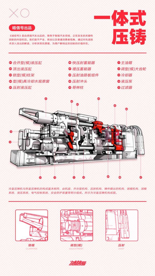 下面,就让虎嗅汽车暗信号团队给大家聊聊,一体化压铸有多厉害,以及小米的这款9100吨压铸机在行业里处于怎样的级别和水平。