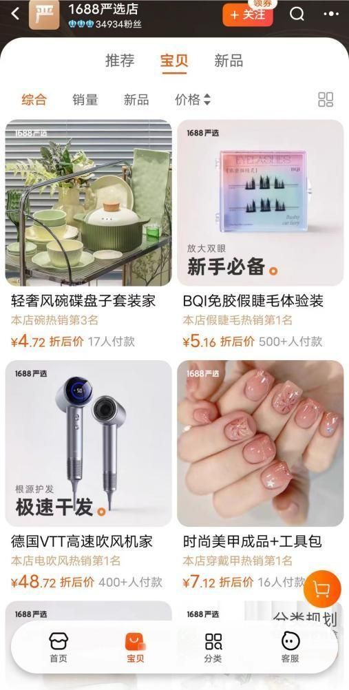 根据相关报道,1688严选店的商品种类以生活必需品和家庭用品为主,这也侧面反应了1688入驻淘宝之后主要的目标消费者是“95后”或“00后”人群,这一举动无疑是加快1688与“Z世代”电商的接轨,吸引着新中产和精致宝妈等群体的目光,除此之外,1688的商品定位于中高端价格带,使其在固有的“优惠”特质上又多了一层质量保证。