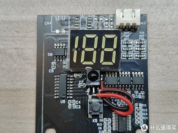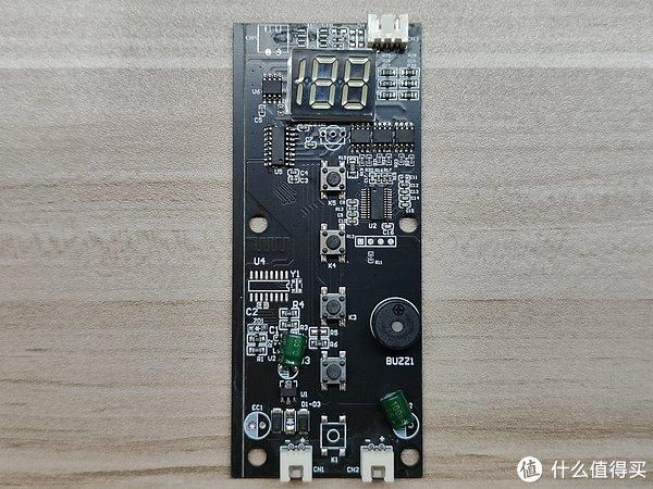 这是控制板元器件面。两位半数码管正下方的三孔焊盘就是红外接收头的预留位,改装十分简单,补上这颗红外接收头即可。