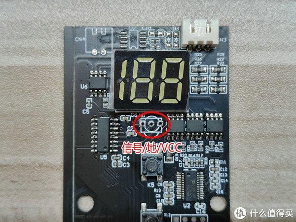 预留红外接收头的引脚顺序,从左至右依次为:信号——地——VCC。