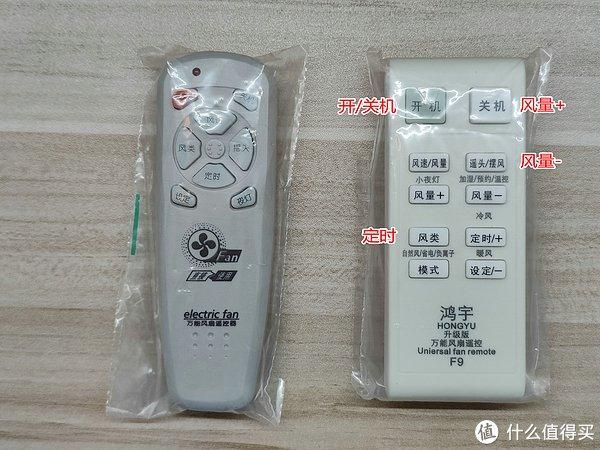 我使用以前购买的两款风扇万能遥控器进行测试,两款均能配对。永速风扇使用的是通用遥控代码,市面上的风扇万能遥控器应该都能配对。配对成功后,键位功能与原遥控器有所不同,自己用标签纸进行标注即可。需要说明的是:永速风扇机械版摇头装置与遥控版不同,机械版改装遥控后,不能实现遥控控制摇头功能。