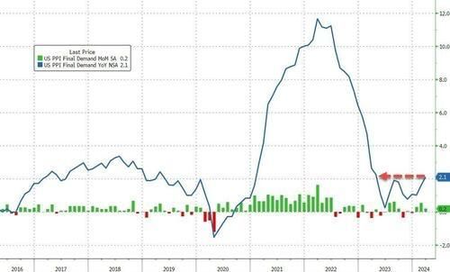 美股开盘前,美国3月生产者价格指数(PPI)数据数据公布,数据显示,三月份PPI同比增速录得2.1%,虽略低于市场预期,但环比增长0.2%,这一数字却稍高于市场预期。尤为值得一提的是,核心PPI同比增速加速至2.4%,环比增长则与上月持平,这给市场带来了一些惊喜。