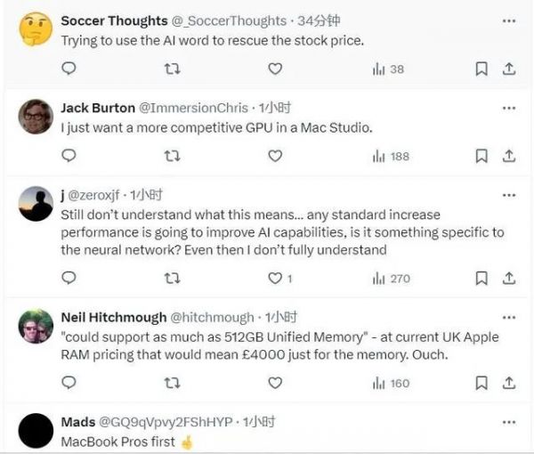 对此,市场和消费者的反应混杂。一些批评者指出,虽然任何标准的性能提升都将自然增强AI处理能力,但将AI功能作为主打的营销策略可能是苹果在尝试提振其股价。