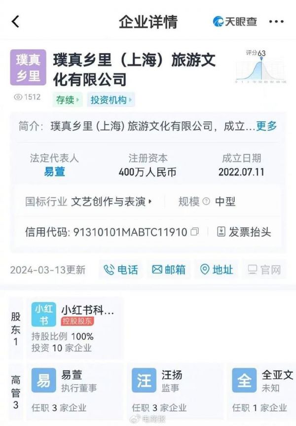 旅游市场的爆发市场有目共睹,小红书此举意在加快布局,扩大文旅版图。事实上,小红书入局文旅赛道的野心早已暴露。早在2022年,小红书就成立了旅游公司,璞真乡里(上海)旅游文化有限公司便是由小红书科技有限公司100%持股。