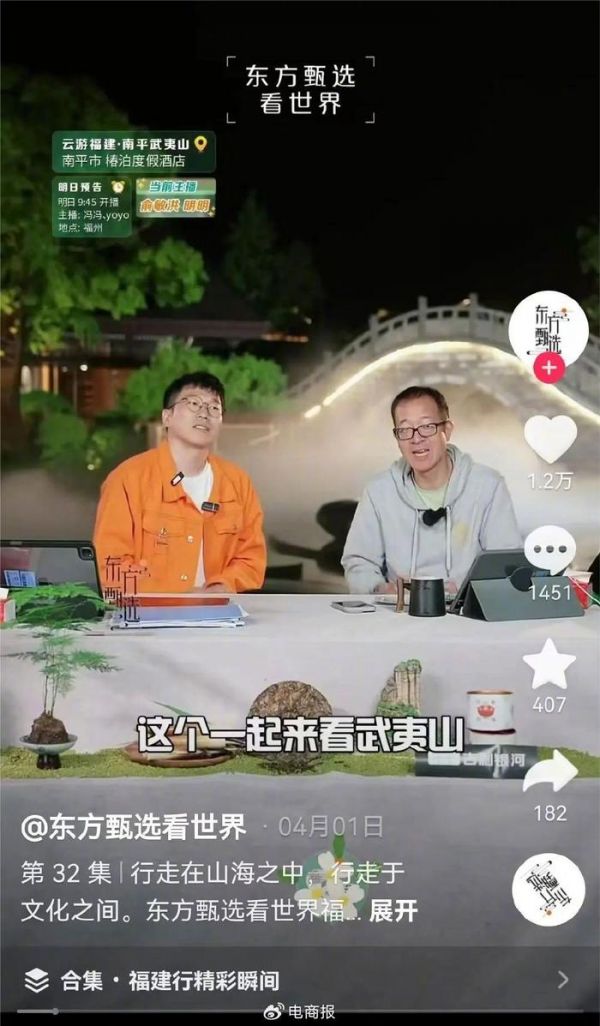 此外,今年,俞敏洪也多次在账号中发布文旅相关的视频。3月底,东方甄选来到了福建,在福建土楼景区举办了福建好物带货直播活动。数据显示,3月30日至31日,东方甄选福建专场订单总数超160万单,总成交额达1.2亿元。