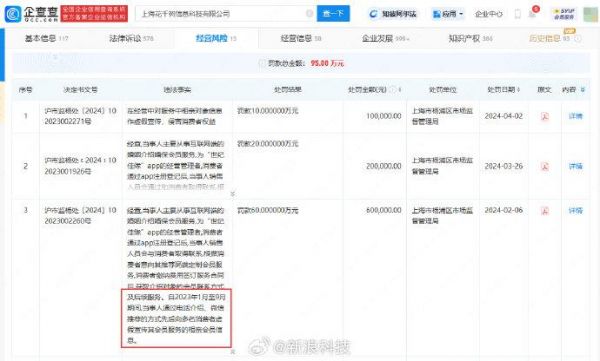 值得注意的是,此前,该公司已因向消费者虚假宣传其会员服务的相亲会员信息被罚60万,今年央视315晚会中,世纪佳缘等婚恋公司被点名诱导消费者购买动辄上万元的会员服务。