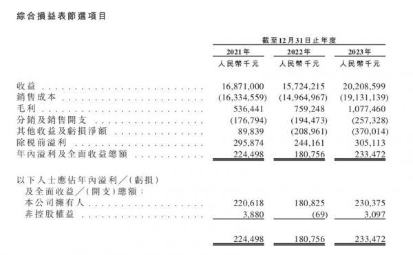 招股书显示,2021年至2023年,梦金园的营收分别是168.71亿元、157.24亿元、202.09亿元,同期净利润分别为2.2亿元、1.8亿元、2.3亿元。2023年以来,屡创新高的金价带来的黄金热扭转了梦金园2022年收入下滑的颓势,同比增长了28.5%。