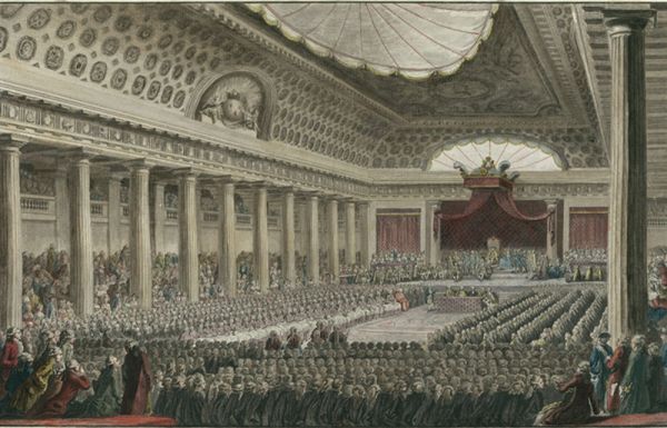 事实上,这种构想已经实际发生了。1789年5月,法国社会的三个阶层——神职人员、贵族和平民——聚集在凡尔赛讨论征收新税和改革。这一事件标志着法国转向民主作为主导政治治理体系的转折,类似情形很快出现在欧洲其他地区。这一事件的历史意义不仅在于辩论中的思想,还在于这些思想在空间中的安排。