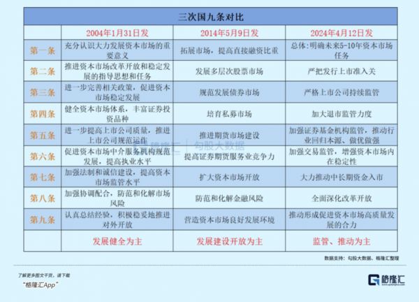 三次“国九条”政策,最主要不同点之一在于各自承担的“任务”不同。