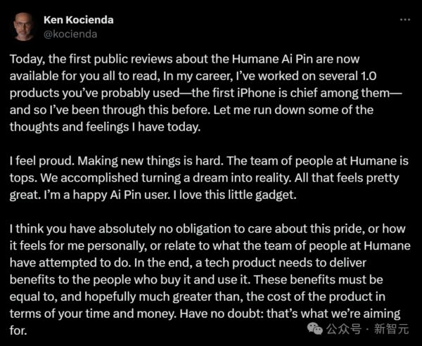 面对媒体纷至沓来的嘲讽和恶评, Humane产品工程师主管Ken Kocienda在X上发了一篇长文,做出回应。