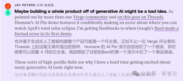 当然,也有一些比较手下留情(但仅限于标题了),比如纽约时报的这篇《Ai Pin想把你从手机中解放出来》。